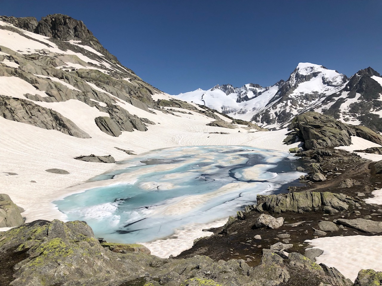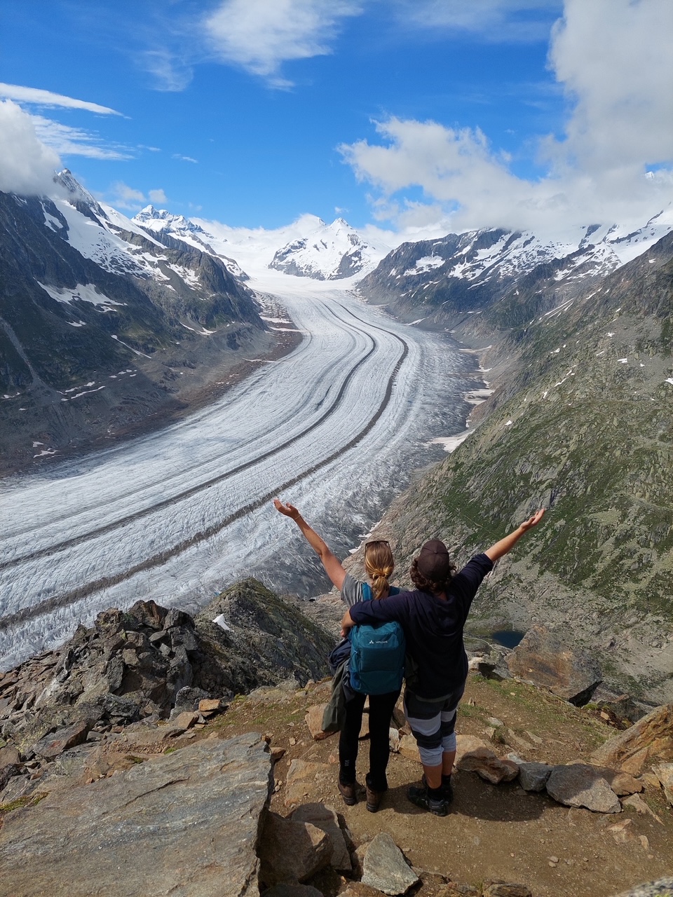 Wunderschöne tiefe Erfahrungen erleben wir auch, wenn wir uns intuitiv von unserer Neugier leiten lassen. Ohne Ziel und ohne zeitliche Begrenzung wandern wir begeistert durch spektakuläre Kulissen. Eines Morgens machten wir uns auf zu einer Tagestour in den Schweizer Alpen. Mit einer wunderschönen Aussicht über schneebedeckte Bergspitzen standen wir an den Wanderschildern und entschieden spontan, welche Tour wir wandern wollen. Voller Vorfreude auf den Tag entdeckten wir hinter jeder Kurve pure Magie: Eine aufgeplatzte Kristallader mit endlos vielen herausgebrochenen Bergkristallen am Wegesrand. Völlig fasziniert tankten wir hier neue Energie und wanderten glücklich weiter. Ein paar Kilometer weiter trauten wir unseren Augen nicht: Vor uns lag ganz friedlich ein zugefrorener Bergsee, der in den intensivsten Blautönen schillerte. Erfrischt und entzückt setzten wir unsere Wanderung fort. Wir waren uns sicher, dass wir gerade das Highlight der heutigen Wanderung entdeckten, bis sich vor uns eine kilometerlange Gletscherzunge erstreckte. Imposant, mächtig und doch in sich ruhend berührte uns der alte Gletscherriese sehr. Wieder einmal wurde uns bestätigt: Wenn wir uns intuitiv von unserer Neugier leiten lassen, werden wir an die schönsten Orte geführt.