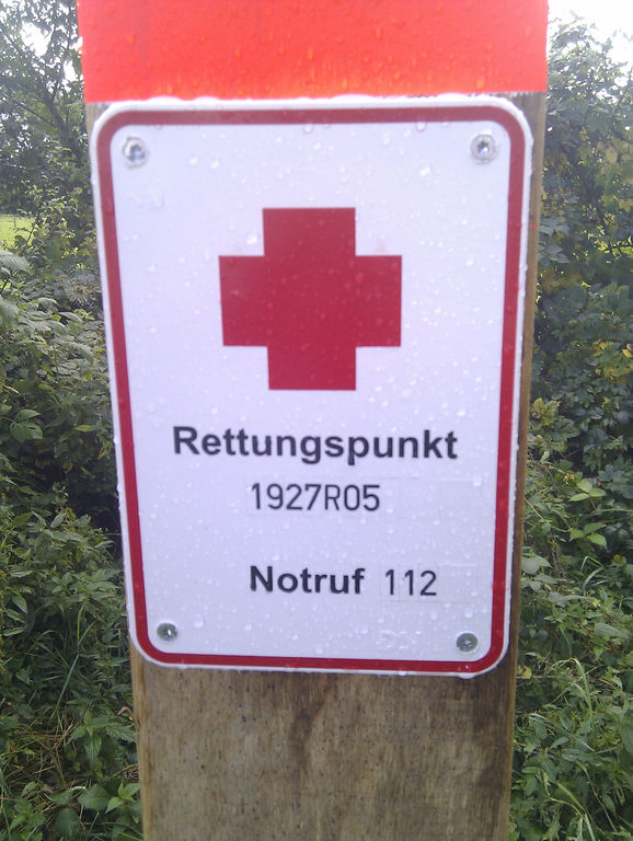Rettungspunkt Schild im Märkischen Kreis im Sauerland